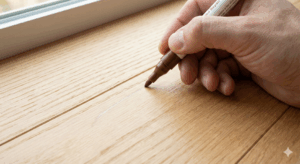 - 着色:補修ペンで木目に沿って色を入れる。